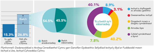 Nod y dadansoddiad dadelfennu Blinder-Oaxacaoeddesbonio’r gwahaniaethau ym mynychder y canlyniadau hyn mewn grwpiau a drefnwyd mewn haenau ar sail eu gallu i gynilo o leiaf £10 y mis, p’un a oeddent yn byw mewn amddifadedd materol, a ph’un a oedd ganddynt salwch, anabledd neu wendid hirsefydlog cyfyngol. Yn ogystal â dadansoddi’r bylchau iechyd arwyddocaol a oedd yn bodoli yn y blynyddoedd cyn y pandemig COVID-19, mae hefyd wedi dangos pa benderfynyddion iechyd oedd fwyaf dylanwadol.