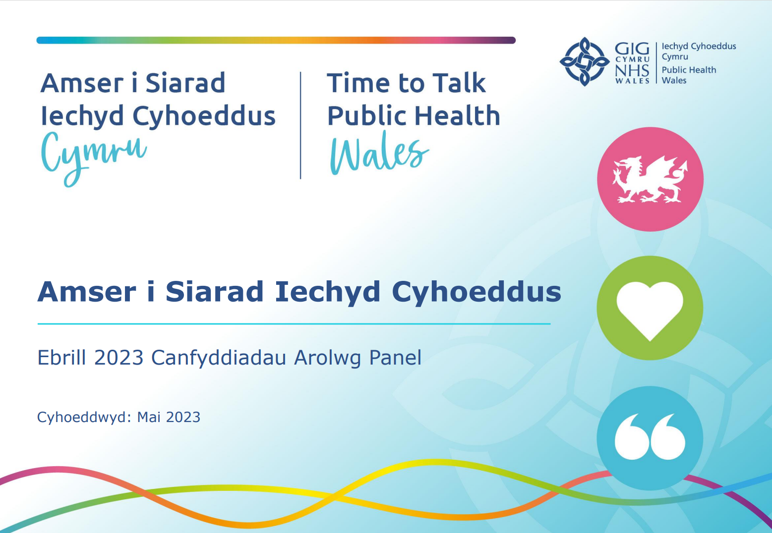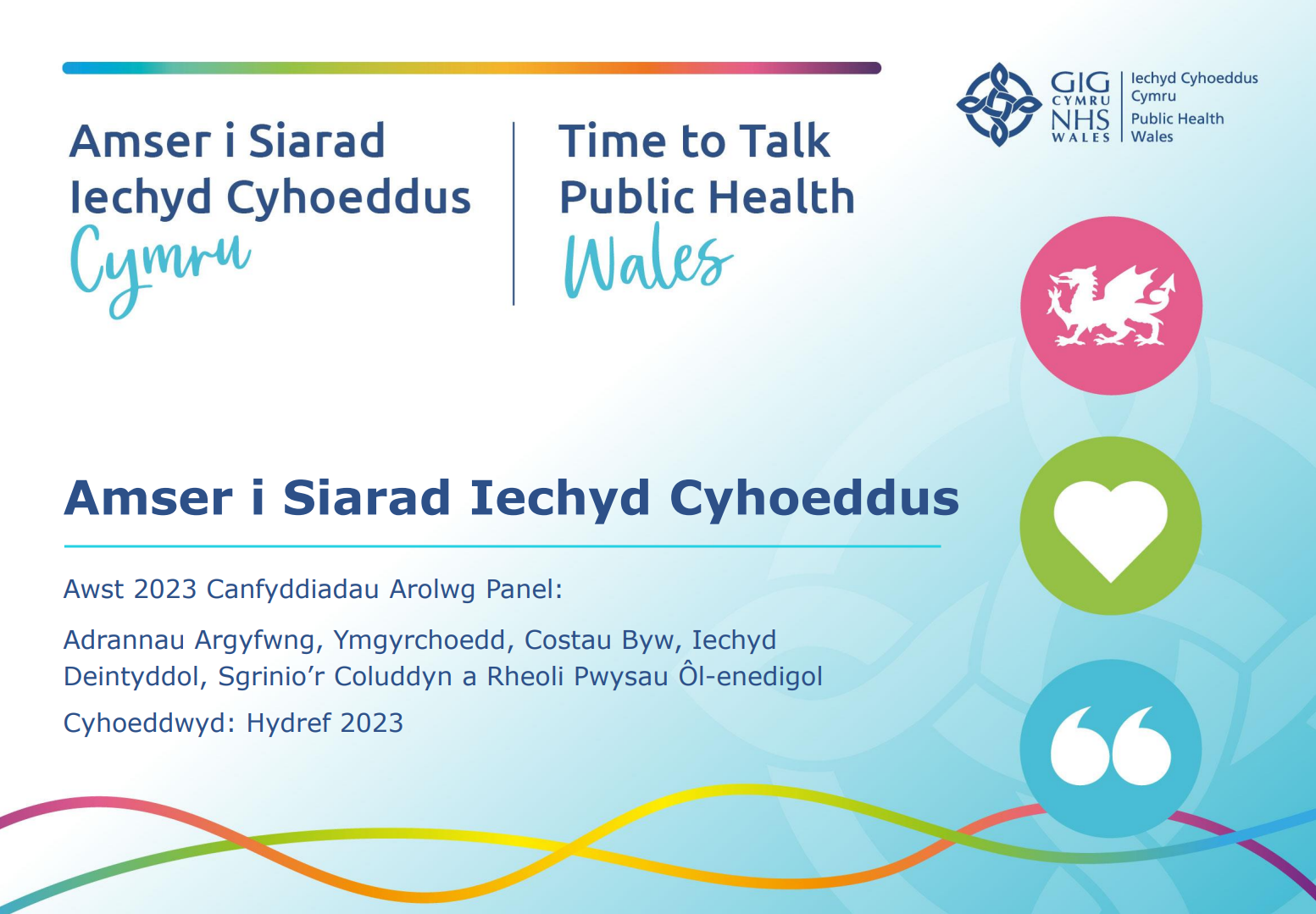 Mae’r adroddiad hwn yn cyflwyno canfyddiadau o arolwg Awst 2023 sy’n cwmpasu Adrannau Argyfwng, Ymgyrchoedd, Costau Byw, Iechyd Deintyddol, Sgrinio’r Coluddyn, Rheoli Pwysau Ôl-enedigol.